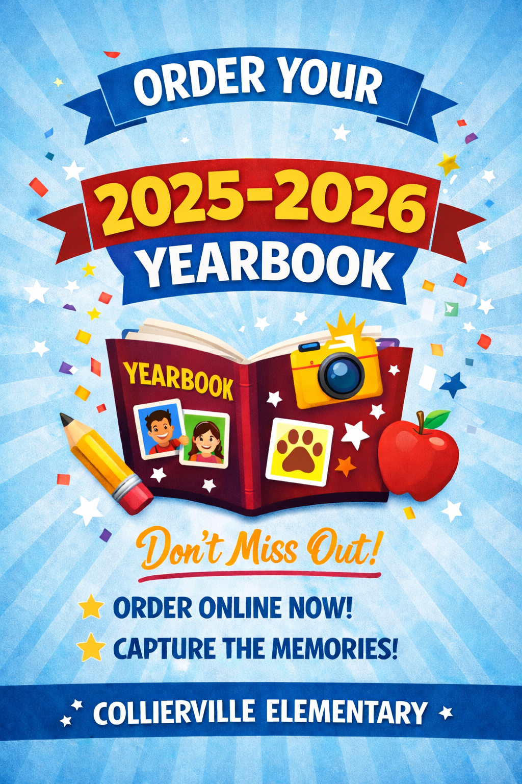 Dear CES Families,It’s time to order your 2025–2026 Collierville Elementary Yearbook! 📘✨ Yearbooks are a wonderful way to capture memories from the school year that students will treasure for years...